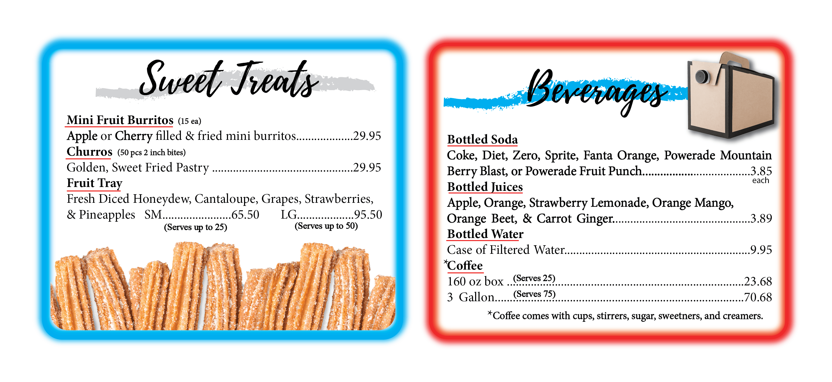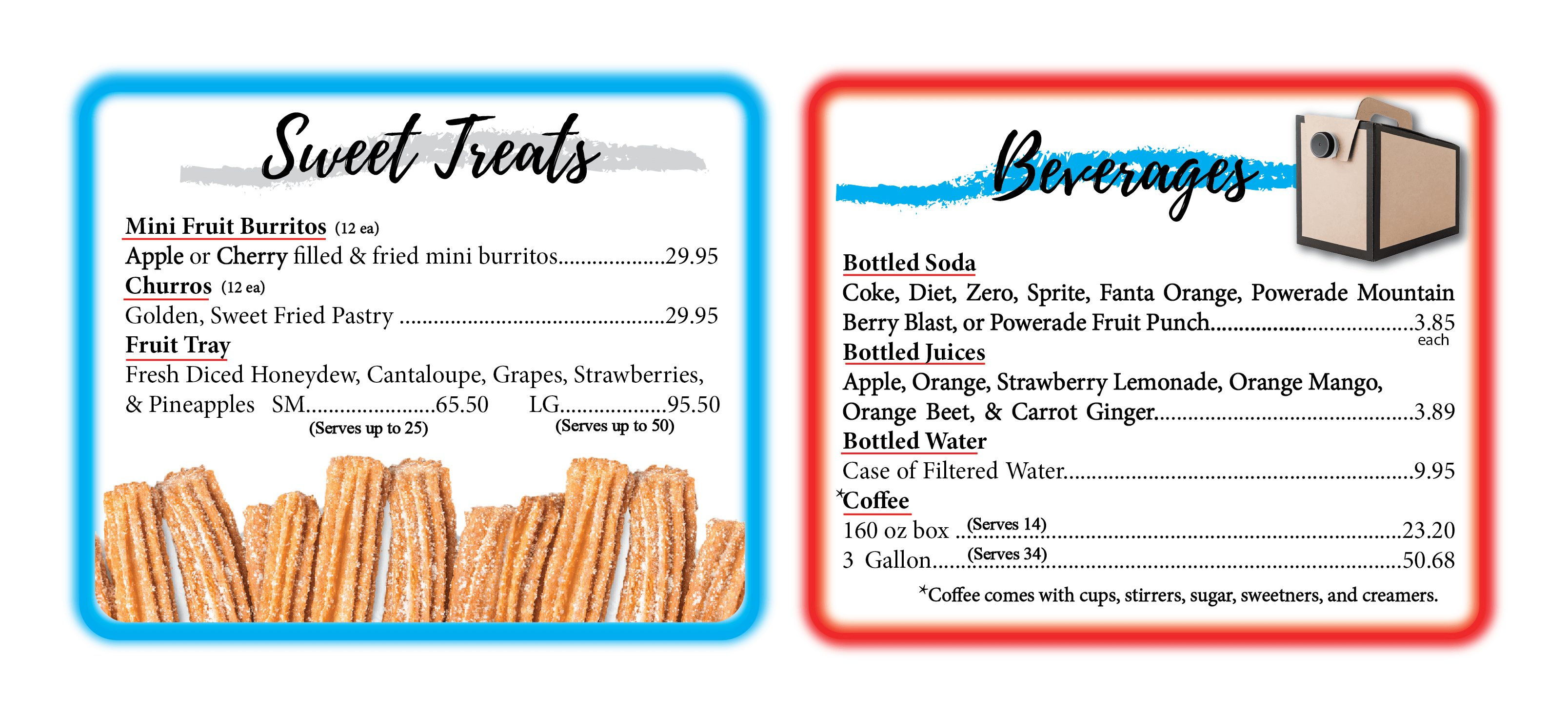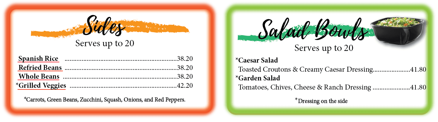 For a delivery fee of $35 within a 10-mile radius, we provide food in disposable pans, containers, and serving utensils.